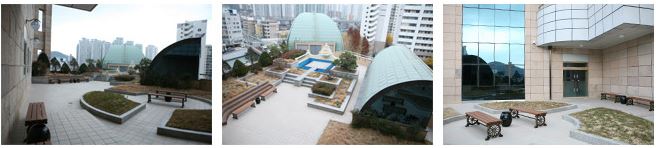 4층에 위치한 하늘정원은 도심속에 위치한 공원을 느끼실수 있으면 잠시 쉬어갈수 있는 공간입니다.
