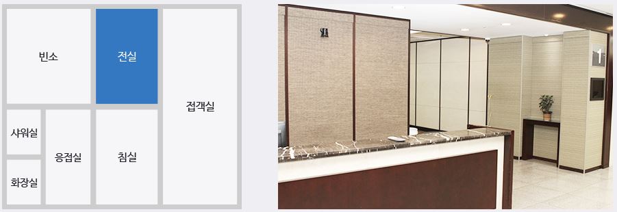 12호, 14호 (지하1층/ 213.6㎡) - 편의시설로는 침실, 샤워실, 응접실, 파우더룸, 화장실, 접객실, 전실 등이 있습니다.