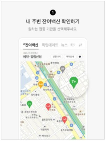 현재 본인 위치정보 제공 동의를 하시면 본인이 위치한 반경 2km 이내의 접종 의료기관의 잔여백신 당일예약과 알림 신청이 가능합니다.