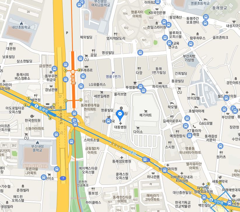 지하철: 동래역 2번출구, 수안역 1번출구, 명륜역 2번출구, 교대역 8번출구